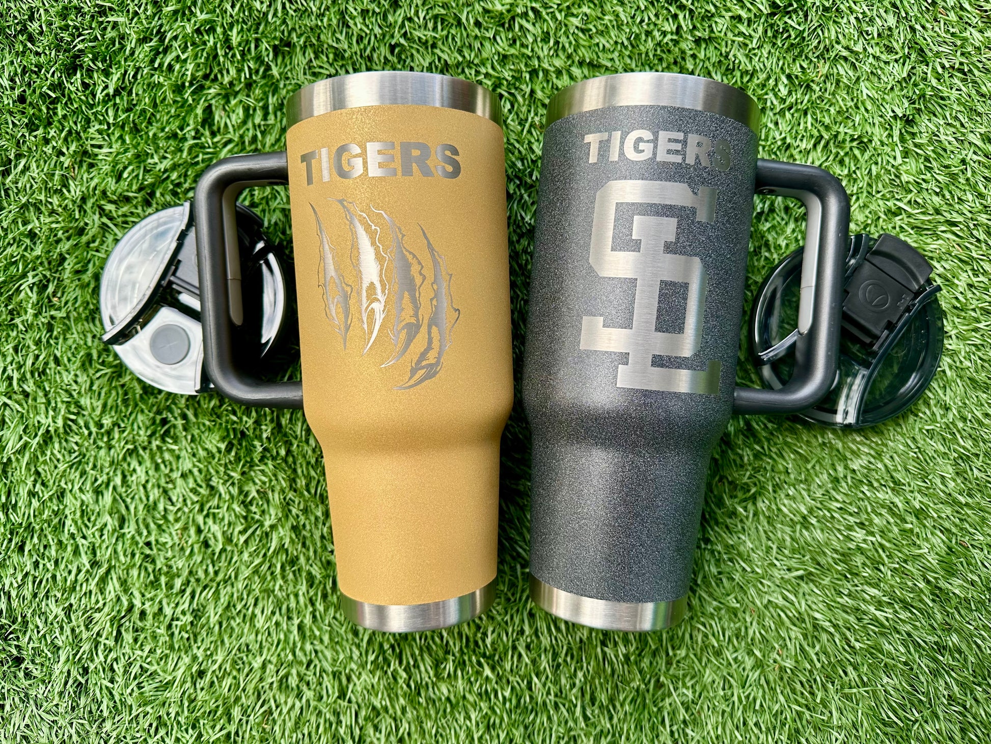 - This listing is for JUST Tigers w/ the logo of your choosing, if you would like personalization, please visit: https://macnhaze.com/products/slo-high-40oz-personalized-big-swig-tumbler